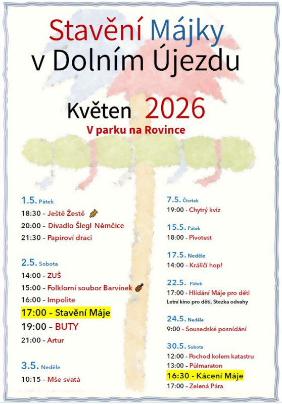 Parkoviště na Rovince bude z důvodu příprav a konání akce DOLNOÚJEZDSKÉ STAVĚNÍ MÁJE uzavřeno v termínu: